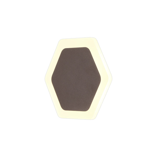 Sleek Hexagon LED Wall Lamp, 12W, Coffee & Frosted Finish, 3000K Warm Glow