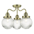 Tamara 3 Light Bathroom Semi Flush Antique Brass Ribbed Glass IP44