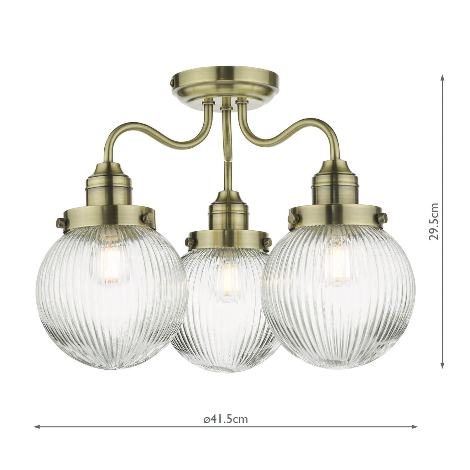 Tamara 3 Light Bathroom Semi Flush Antique Brass Ribbed Glass IP44 is backordered and will ship as soon as it is back in stock.