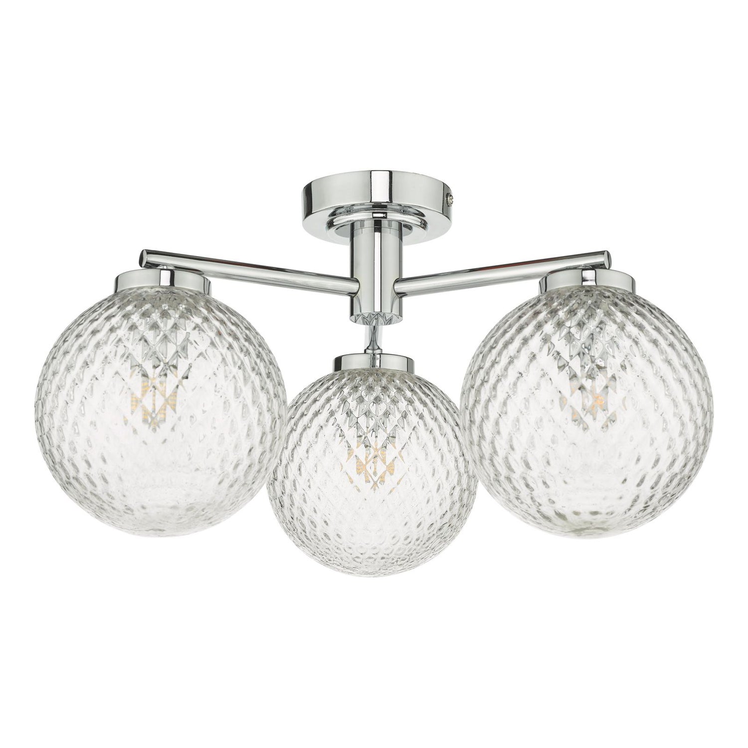 Wayne Bathroom 3 Light Semi Flush Polished Chrome Glass IP44