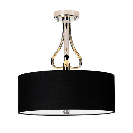 Falmouth 3 Light Semi-Flush Fixture in Polished Chrome with Black Shade