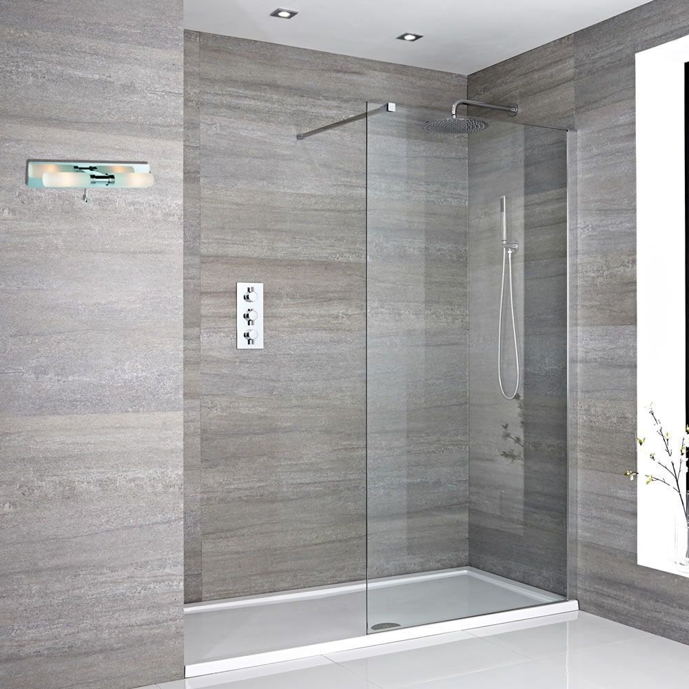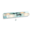 Contemporary bathroom wall light with an IP44 rating. Thin elegant opal glass and chrome metalwork. Ideal for use above a mirror and features a pull cord switch for convenience.