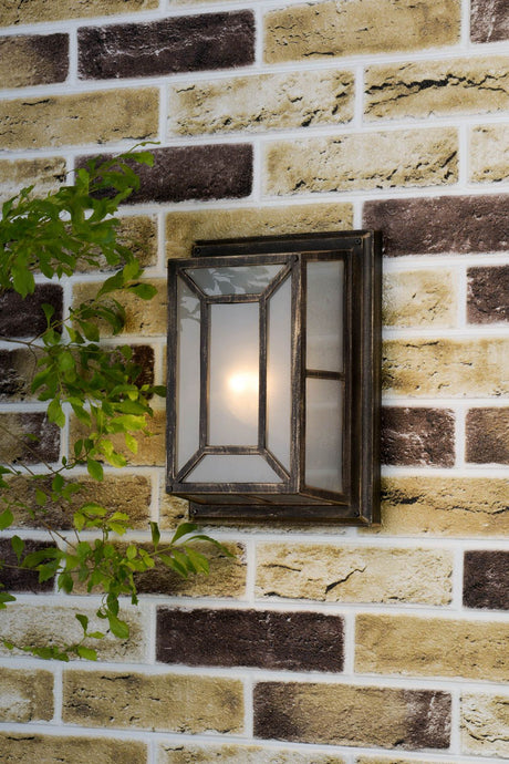 £10224 GBP£13632Unit price /UnavailableIn stock (209 units) Trent Outdoor Wall Light Black/Gold Frosted Glass IP44