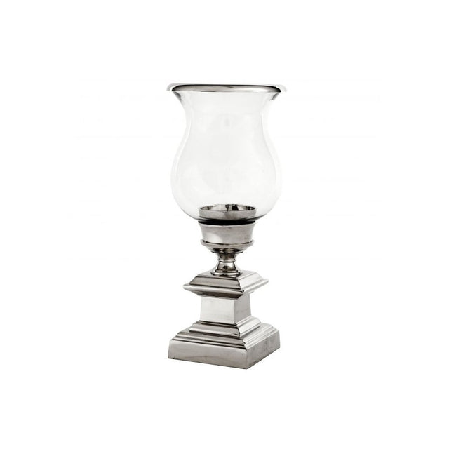 Datcha Hurricane Candle Holder, Polished Nickel & Clear Glass