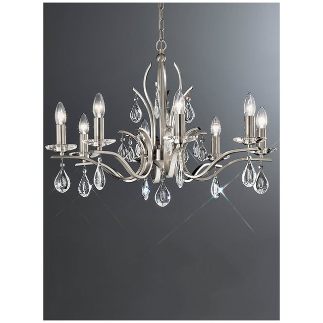 Dazzling Faceted Crystal Elegance 8-Bulb Satin Nickel Chandelier