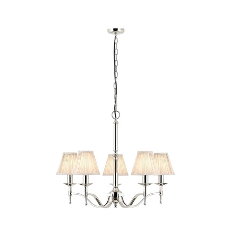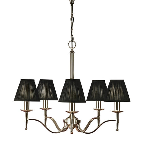 Stanford Elegance: Polished Nickel 5-Light Chandelier with Black Organza Shades