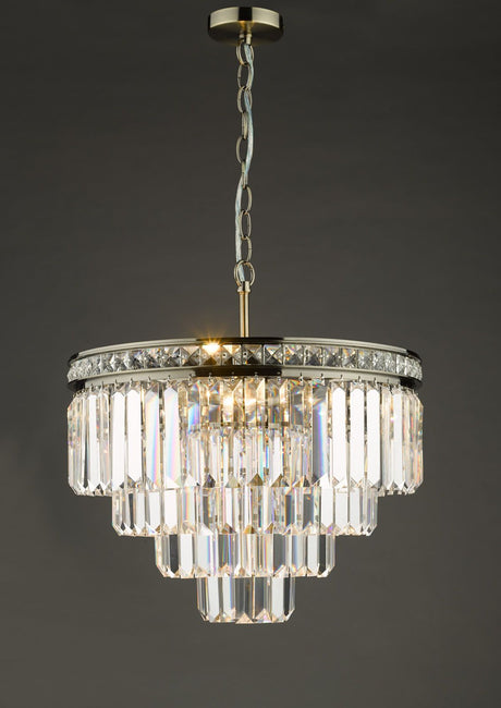 £58914 GBP£78553Unit price /UnavailableIn stock (49 units) Vyana 4 Light Pendant Polished Nickel Crystal