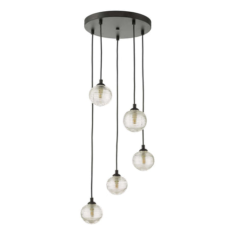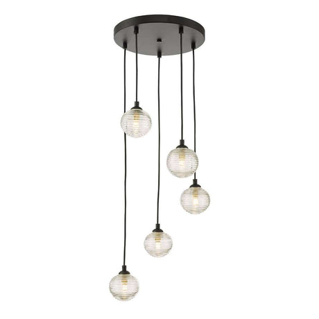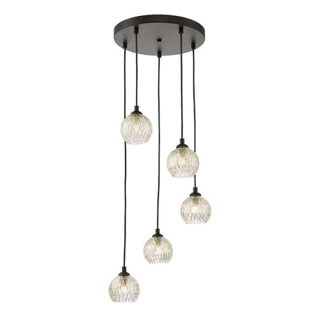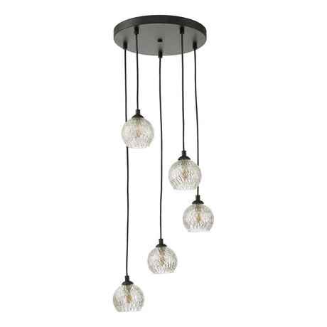 £23500 GBPUnit price /UnavailableIn stock (100 units)Federico 5 Light Cluster Pendant Matt Black With Clear Dimpled Glass