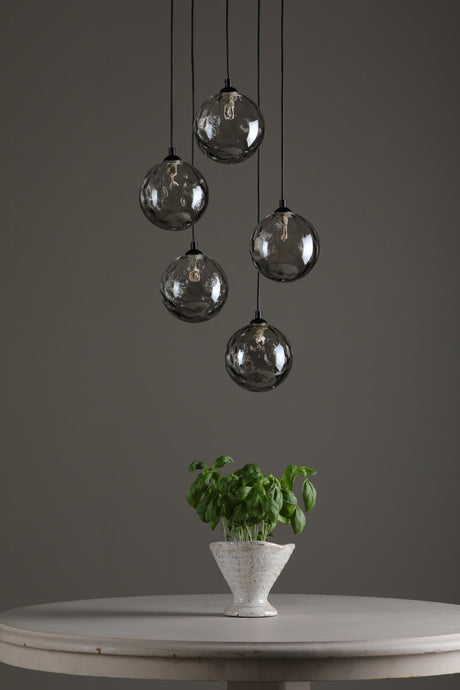 £24800 GBPUnit price /UnavailableIn stock (100 units)Federico 5 Light Cluster Pendant Polished Chrome With Smoked Dimpled Glass