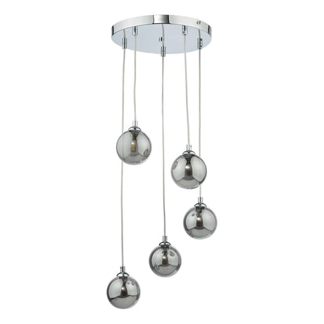 £14300 GBPUnit price /UnavailableIn stock (100 units)Federico 5 Light Cluster Pendant Polished Chrome With Smoked Glass