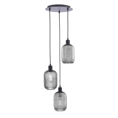 £17200 GBPUnit price /UnavailableIn stock (100 units)Accessories 3 Light Cluster Pendant Matt Black and Smoked Ribbed Glass