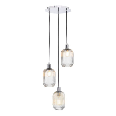 £21797 GBPUnit price /Unavailable Accessories 3 Light Cluster Pendant Polished Chrome and Ribbed Glass