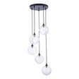 Federico 5 Light Cluster Pendant Matt Black With Clear Dimpled Glass