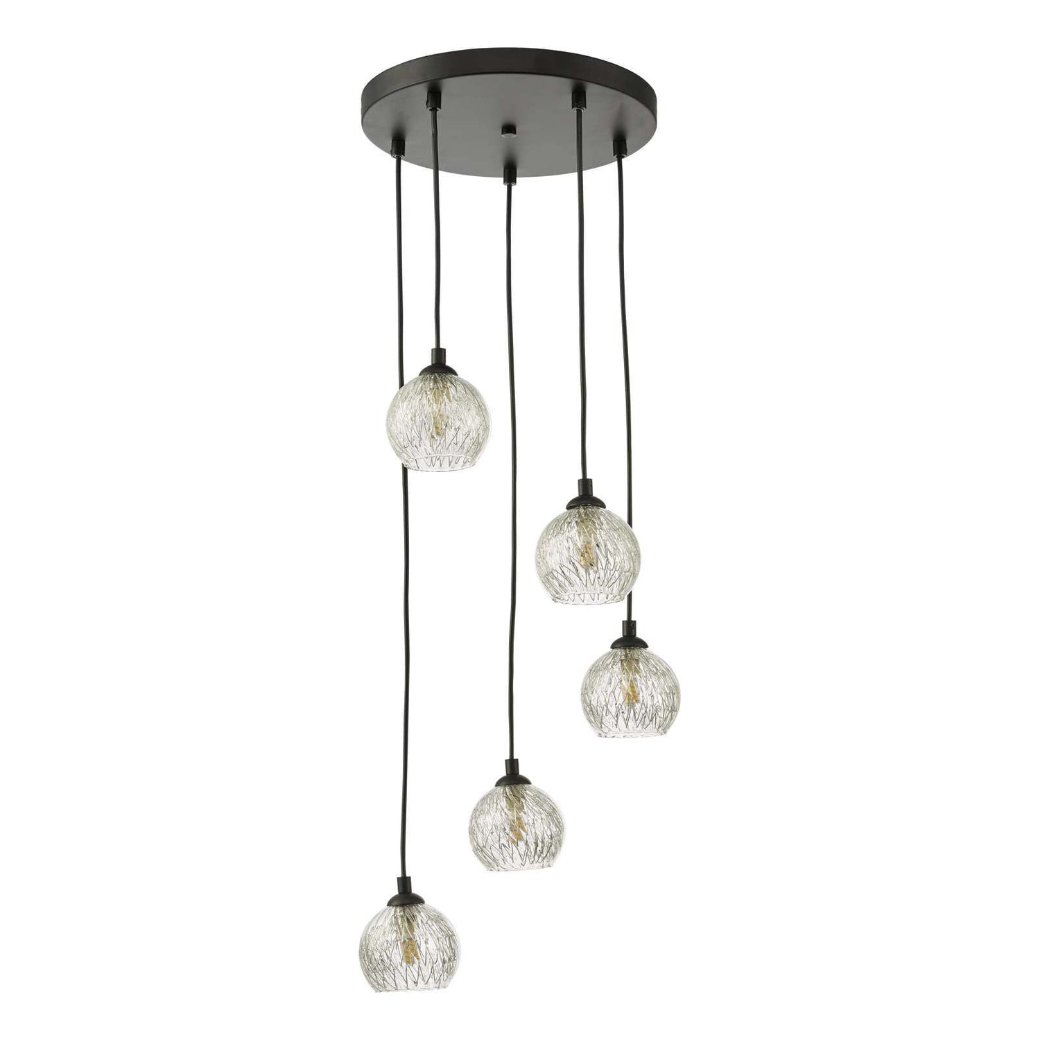 Federico 5 Light Cluster Pendant Matt Black With Clear/Wire Glass