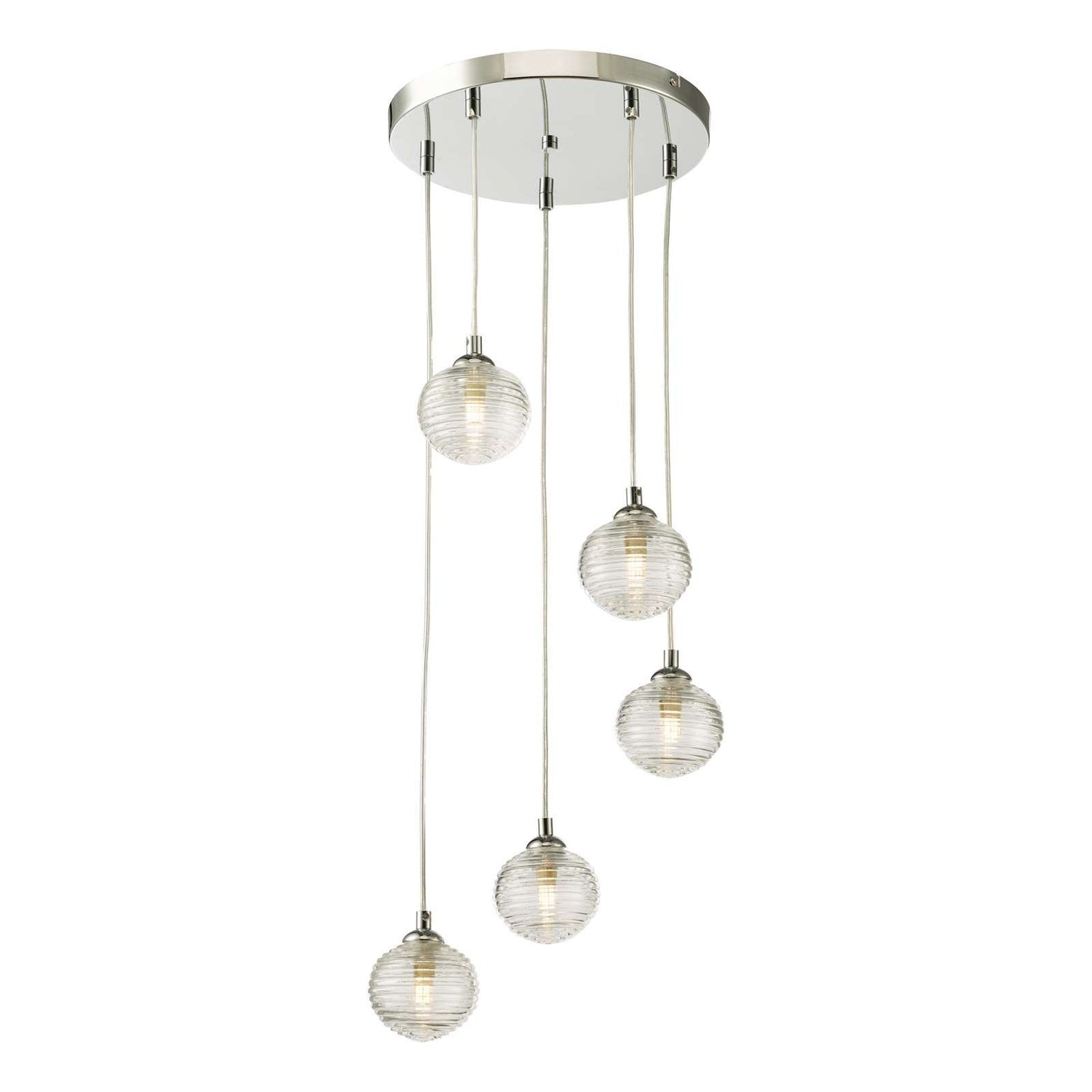 Federico 5 Light Cluster Pendant Polished Chrome With Ribbed Glass