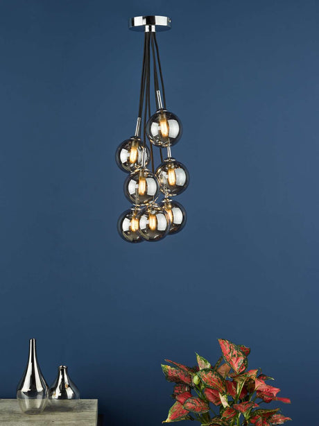 £24000 GBPUnit price /UnavailableIn stock (100 units)Elpis 7 Light Cluster Pendant Polished Chrome With Smoked Glass
