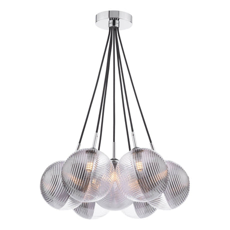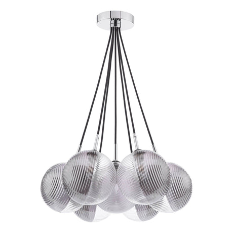 £24000 GBPUnit price /UnavailableIn stock (100 units)Elpis 7 Light Cluster Pendant Polished Chrome With Smoked/Clear Ribbed Glass