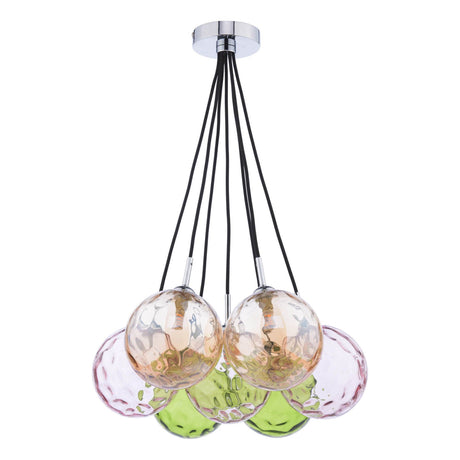 £9600 GBPUnit price /UnavailableIn stock (100 units)Elpis 7 Light Cluster Pendant Polished Chrome Mixed Coloured Glass