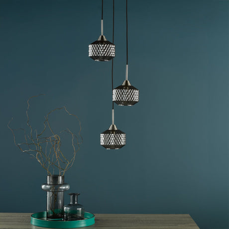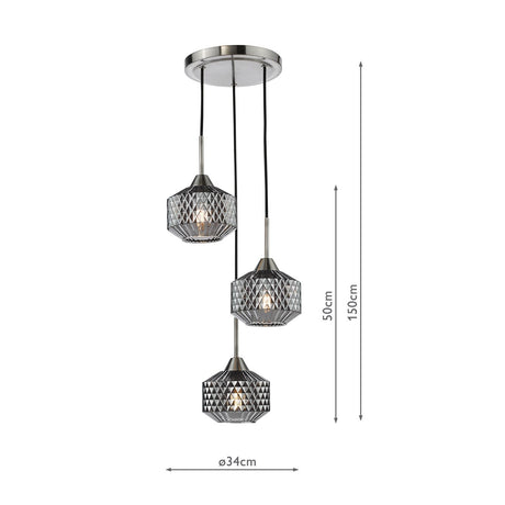 £13000 GBPUnit price /UnavailableIn stock (100 units)Fabrienne 3 Light Cluster Pendant Satin Nickel and Smoked Glass