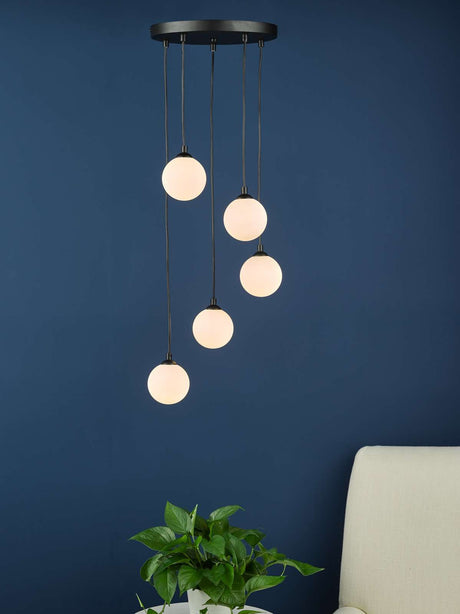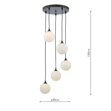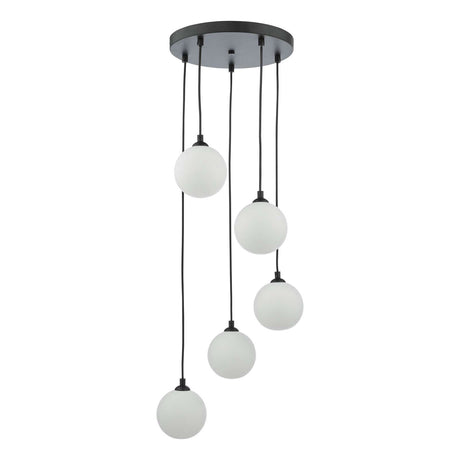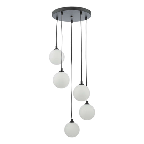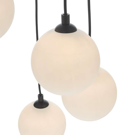 Federico 5 Light Cluster Pendant Matt Black With Opal Glass