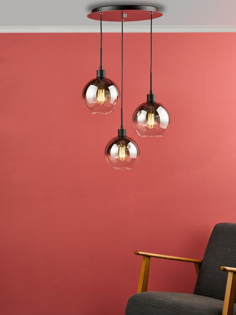 £21500 GBPUnit price /UnavailableIn stock (100 units)Lycia 3 Light Cluster Pendant Matt Black Smoked Ombre Glass