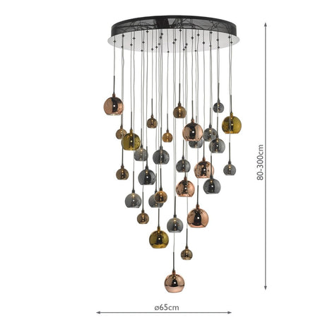 £1,11000 GBPUnit price /UnavailableIn stock (100 units)Aurelia 30lt Cluster Pendant Black Chrome & Copper/Bronze Glass 3M Drop