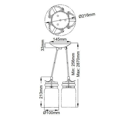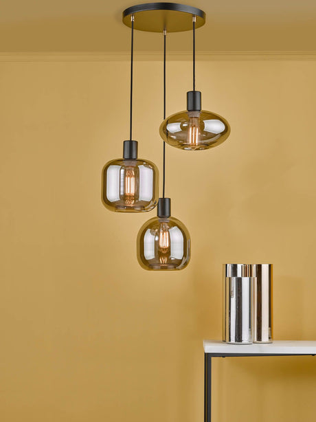 Aiden 3 Light Cluster Pendant Satin Black & Smoked