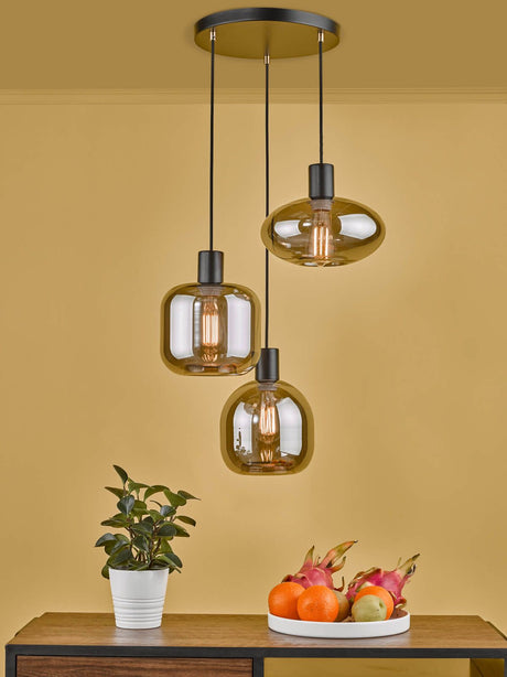 £25200 GBPUnit price /UnavailableIn stock (100 units)Savannah 3 Light Cluster Pendant Satin Gold and Gold Ombre Glass