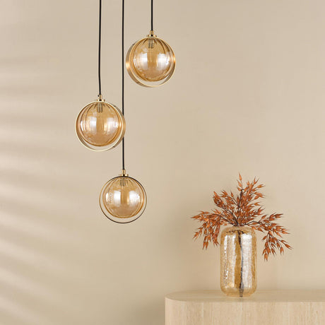 £19100 GBPUnit price /UnavailableIn stock (100 units)Ophira 3 Light Cluster Pendant Antique Gold and Amber Ribbed Glass