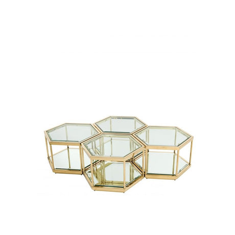 Regular price £1,98640 GBPUnit priceIn stock (24 units)Hexagonal Sax Coffee Table Quartet with Gold Finish and Glass Details