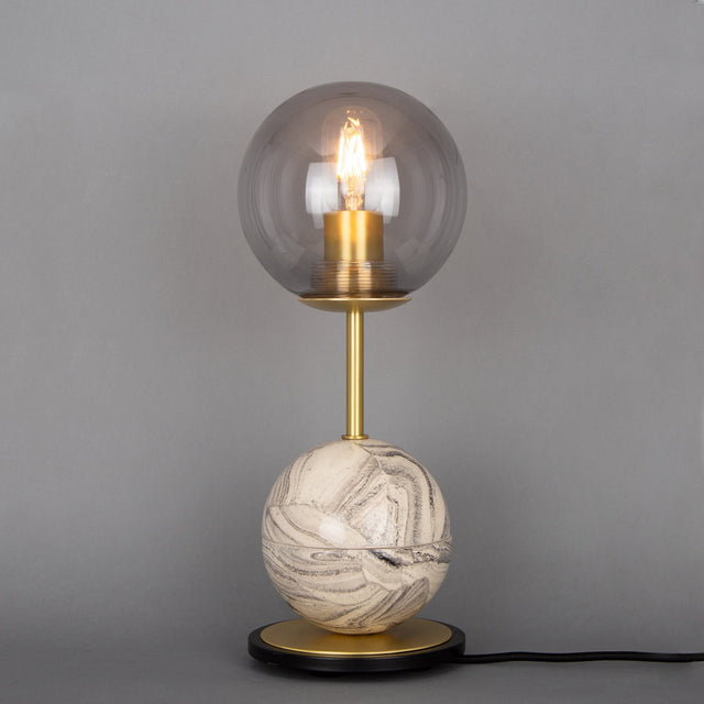 Zapp Marbled Ceramic and Brass Table Lamp with Glass Globe