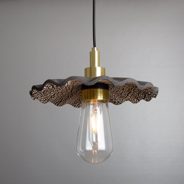 Kirhii Pendant - Black Clay with Antique Brass Accent - Antique Brass is backordered and will ship as soon as it is back in stock.