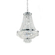Metal frame with gold or chrome finish. Octagonal decorative elements with icicle shaped crystal beads.