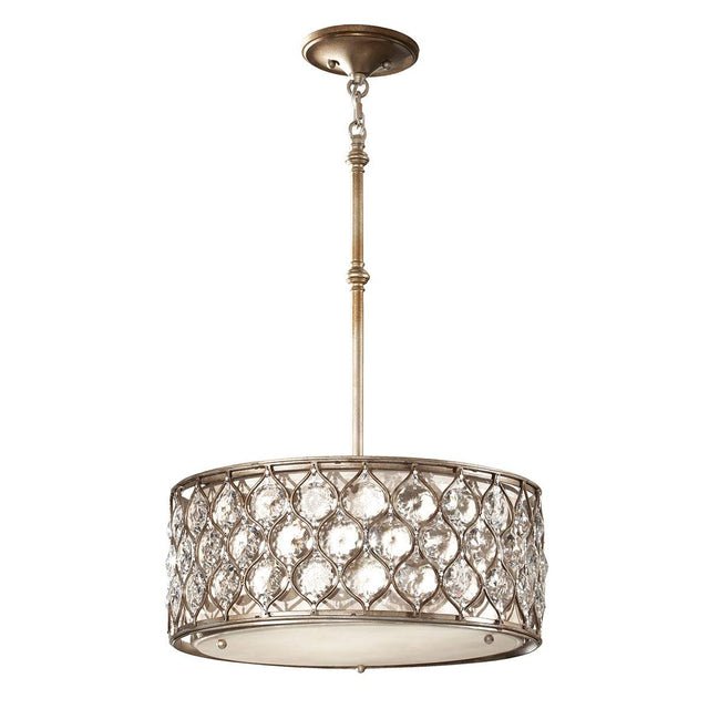 The beautiful Lucia collection, with its array of sunflower shape Bauhinia crystals placed delicately in a Burnished Silver metal frame, comes alight with life once illuminated. This transitional collection is as versatile as it is stunning. All of the fittings include linen shades and elegantly finished glass bottom diffusers.