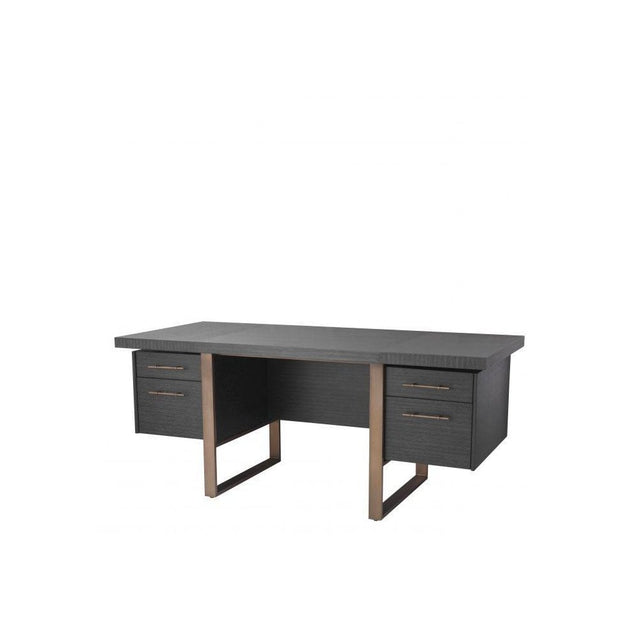 Canova Desk in Charcoal Grey Oak with Brushed Brass Accents