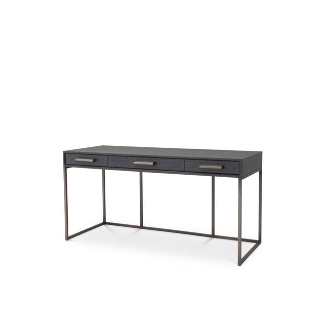 Larsen Modern Desk in Charcoal Grey Oak with Bronze Accents and Faux-Leather Detailing