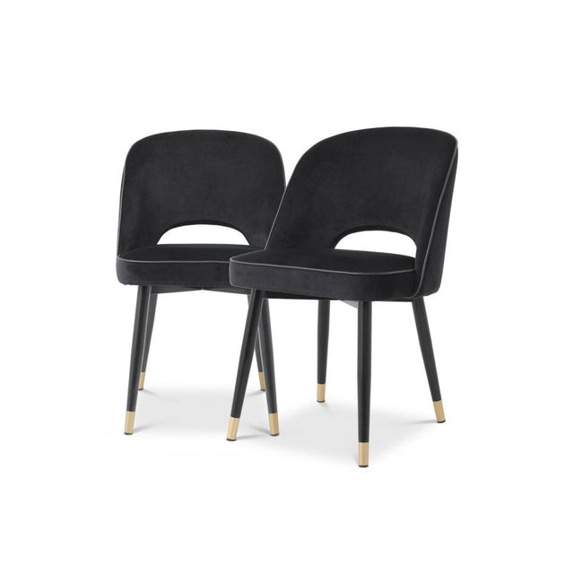 Elegant Cliff Dining Chair Set - Luxe Black Velvet & Faux Leather Trim