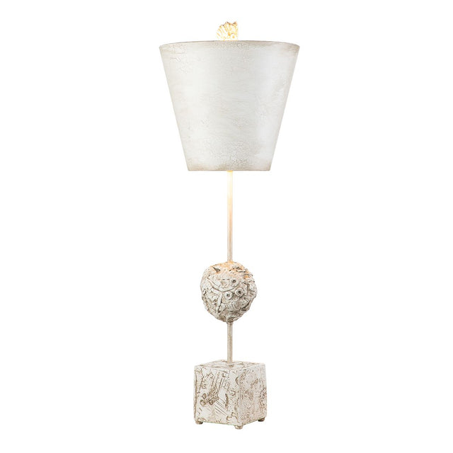 Petra has a bone white base and element which is made from cast resin and steel. It is completed with a distressed bone white parchment shade. LS477
