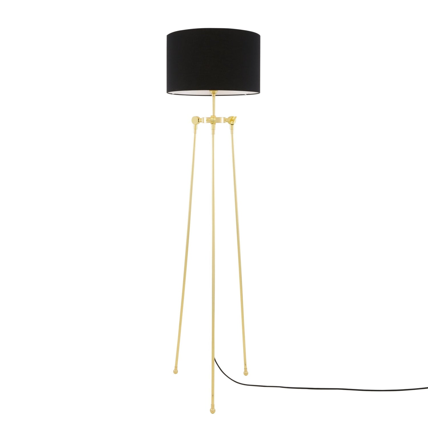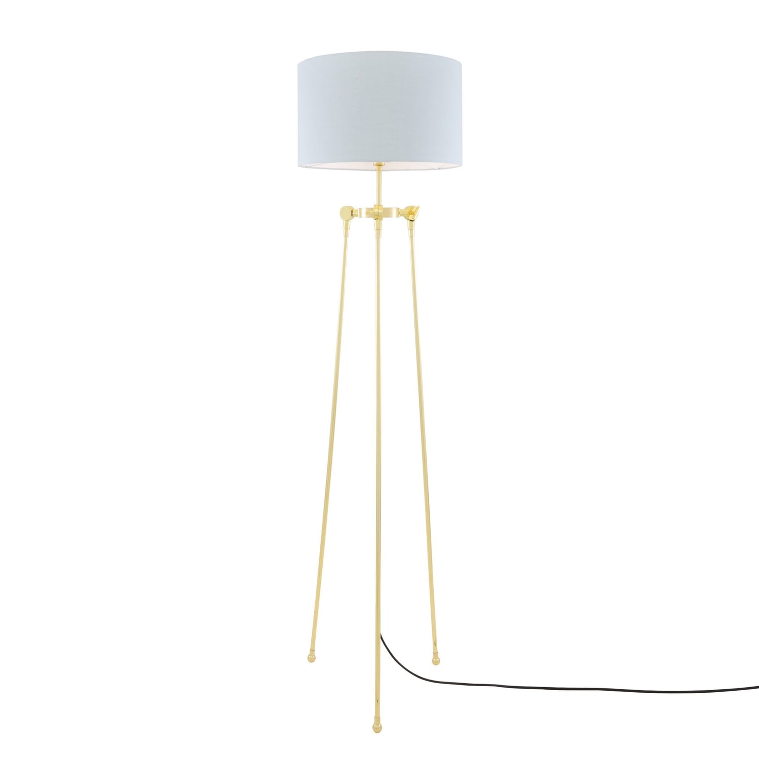 Antique Brass Contemporary Tripod Floor Lamp with Fabric Drum Shade