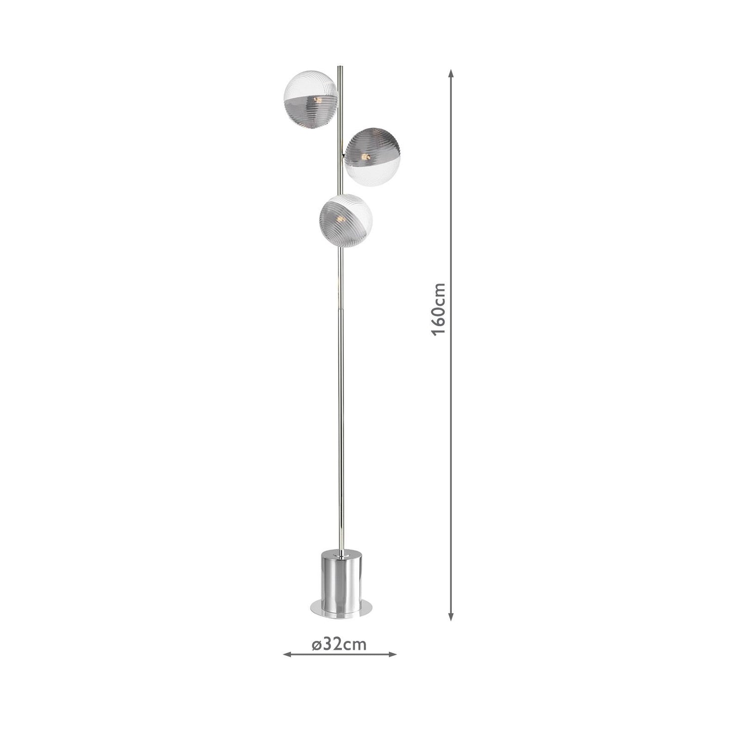 Spiral 3 Light Floor Lamp Polished Chrome With Smoked/Clear Ribbed Glass