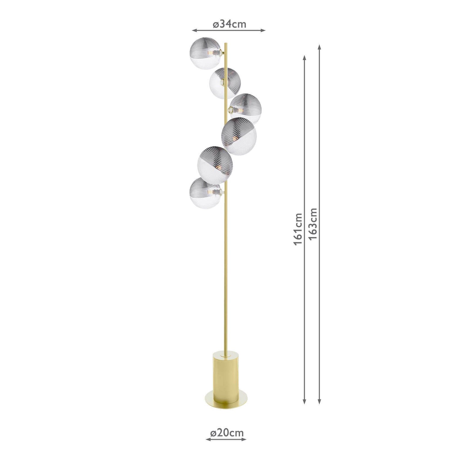 Spiral 6 Light Floor Lamp Matt Gold With Smoked/Clear Ribbed Glass is backordered and will ship as soon as it is back in stock.