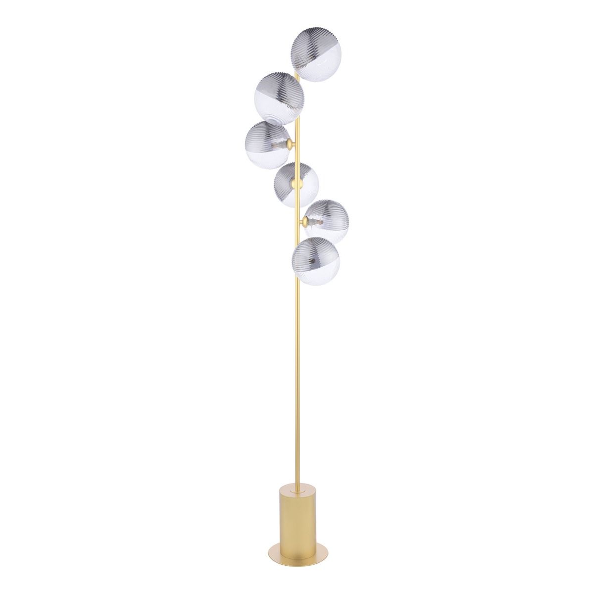 Spiral 6 Light Floor Lamp Matt Gold With Smoked/Clear Ribbed Glass