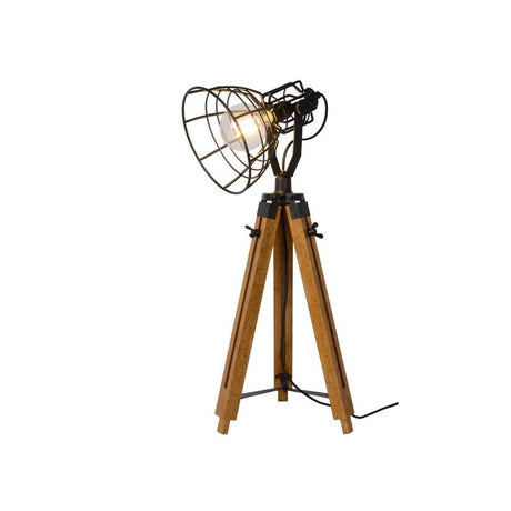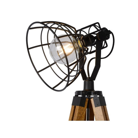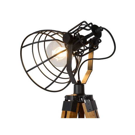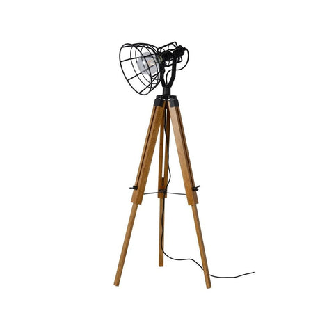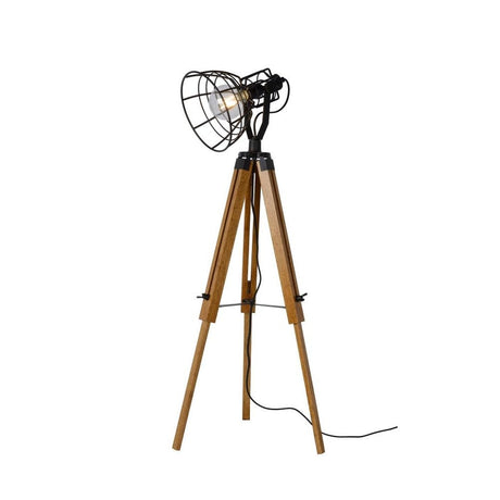 Cottage Chic Black & Light Wood Triangular Floor Lamp