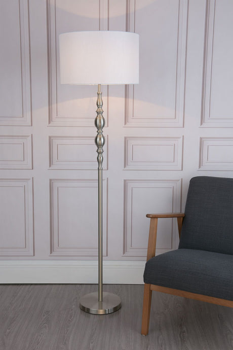 £35473 GBPUnit price /UnavailableVery low stock (1 unit)Modern Elegance Floor Lamp in White and Polished Nickel