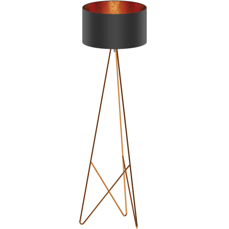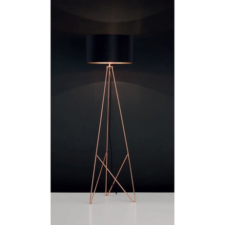 Modern Industrial Copper Floor Lamp with Black Fabric Drum Shade