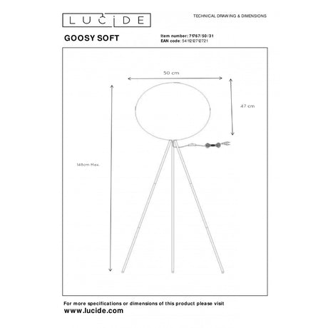 £25125 GBPUnit price /UnavailableIn stock (51 units)Lucide GOOSY SOFT Floor Lamp - Ø 50 cm - E27 Socket - White Elegance