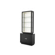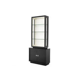 Elegance Cabinet with Black Exterior, White Interior, and Clear Glass Shelves