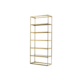 Omega Display Cabinet in Brushed Brass with Smoke Glass Shelves is backordered and will ship as soon as it is back in stock.
