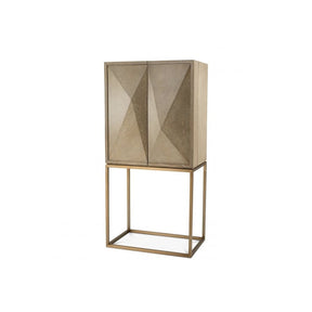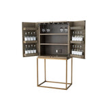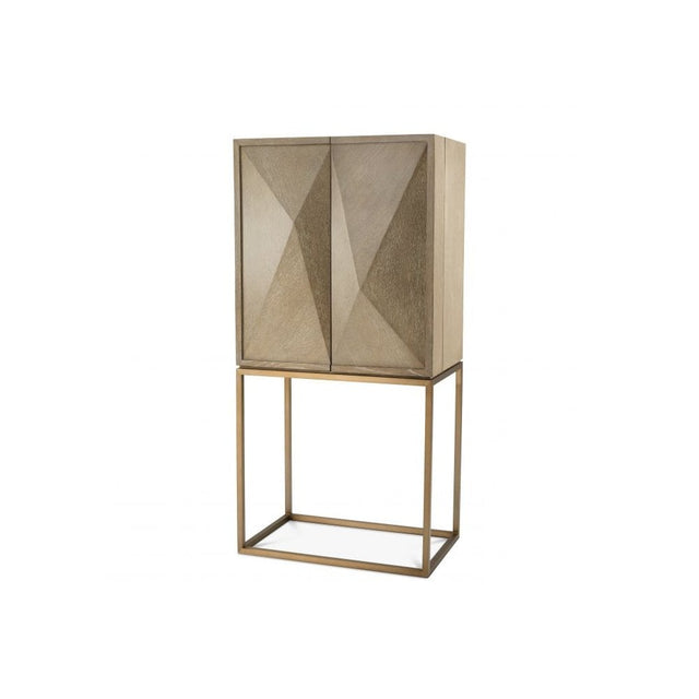 Mid-Century Modern Highland Wine Cabinet in Washed Oak and Brushed Brass Finish