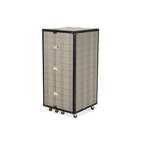 Elegant Campaign-Inspired Wine Cabinet in Bianco Check with Brass Accents